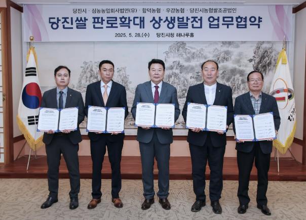 [무한뉴스=정민정 기자] 당진시는 5월 28일 당진시청 해나루홀에서 지역 농협 및 심농 농업회사법인과 함께 ‘당진쌀 판로 확대를 위한 상생발전 업무협약’을 체결했다고 29일 밝혔다.