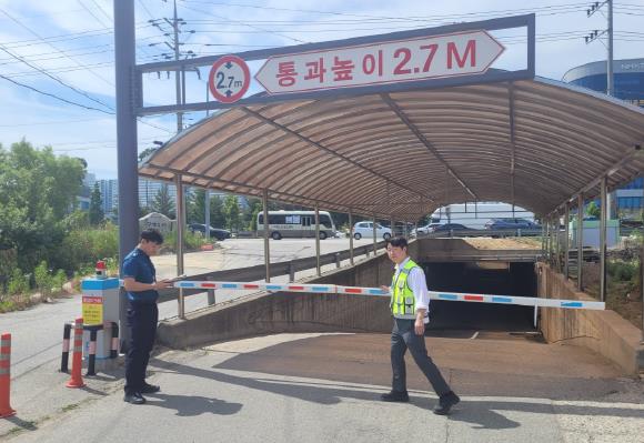 | ▲ 아산시, 아산경찰서와 우기 대비 '자동차단시스템' 집중 점검 실시 |