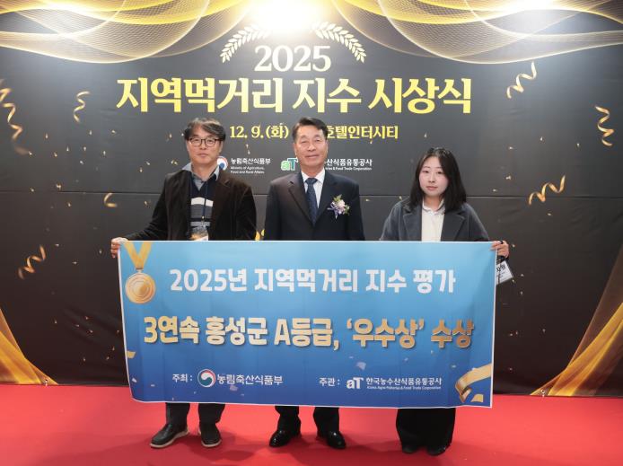 [무한뉴스=정민정 기자] 충남 홍성군은 지난 9일 농림축산식품부가 주최하고, 한국농수산식품유통공사에서 주관하는 ‘2025년 지역먹거리 지수 평가’에서 3년 연속 A등급을 달성, “우수상”(한국농수산식품유통공사 사장상)을 수상하며 지역먹거리 정책 우수 지자체로서의 위상을 굳건히 했다고 밝혔다.
