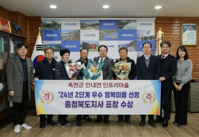[무한뉴스=정민정 기자] 옥천군 안내면 인포리 마을이 2024년 2단계 행복마을사업 우수마을로 선정돼 도지사 표창을 받았다.