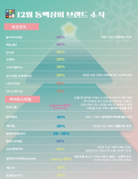[무한뉴스=최진수 기자] 부산시와 부산경제진흥원은 부산 우수 제품 쇼핑 숍 '동백상회'에서 12월 31일까지 송년 감사 특별 할인 행사를 개최한다고 밝혔다.