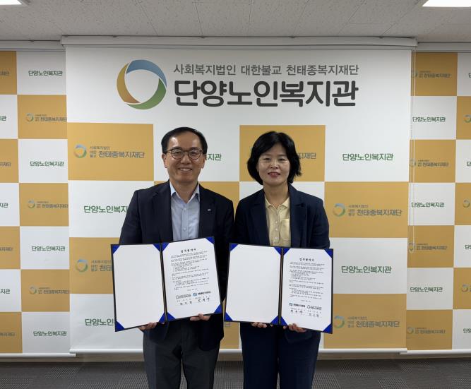 [무한뉴스=정민정 기자] 사회복지법인 대한불교천태종복지재단 산하 단양노인복지관은 9월 17일(수) 한전MCS㈜ 단양지점과 지역사회 노인복지 발전 및 사회적 안전망 강화를 위한 업무협약(MOU)을 체결했다.