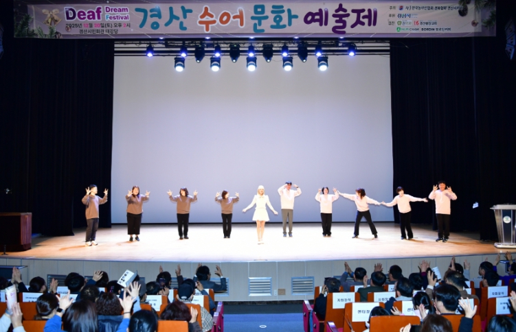 공연을 함께한 조현일 경산시장은 “이번 공연을 통해 많은 시민과 함께 다양한 수어 문화 공연을 즐길 수 있어 매우 의미 있는 시간이었다”며, “앞으로도 장애인의 문화·예술 접근성 향상과 한국 수어 문화 확산을 위해 노력하겠다”고 말했다.