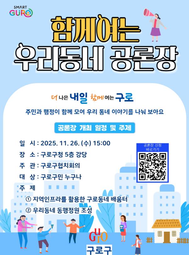 [무한뉴스=정승훈 기자] 구로구가 오는 26일 오후 3시 구청 강당에서 ‘2025 함께여는 우리동네 공론장’을 개최한다.