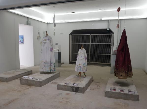 | ▲ 맑은물상상누리 비포어에서 진행 중인 한복그래피티 전시 |