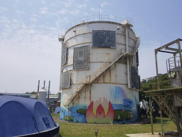 이번에 그래피티 작업이 진행된 놀이통은 이중 과거 가스저장소로 활용하던 공간이다. 외벽에는 방현우 작가의 대형 설치미술 작품이 배치되어 있는데, 수년이 지나며 곳곳에 녹이 슬었다. 이런 질감 위에 그래피티 벽화가 추가되면서 높이 17m, 지름 15m에 이르는 대형 가스통의 외벽이 그 자체로 거대하고 빈티지한 미술관이 됐다.