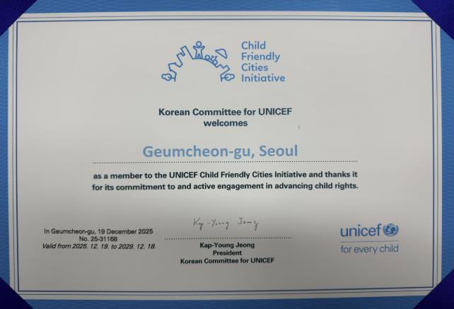 [무한뉴스=정승훈 기자] 금천구는 유니세프 한국위원회로부터 아동친화도시 재인증을 획득했다고 7일 밝혔다.
