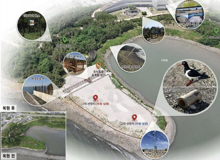 시흥시가 철새도래지 서식처 조성사업에 2년 연속 선정돼 추진한 시화MTV ‘검은머리물떼새 서식지 조성사업’은 2025년 제25회 자연환경대상 기후에너지환경부장관상을 수상하며 그 생태복원 역량을 인정받았다. 시는 (사)시화호지속가능파트너십과 협력해 이번 사례를 생태ㆍ환경교육 프로그램과 연계 발전시켜 나가고 있다.