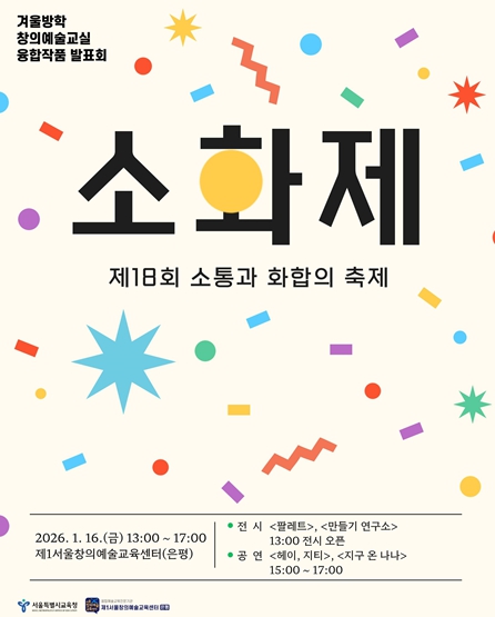 [무한뉴스=정승훈 기자] 서울특별시교육청 제1서울창의예술교육센터는 1월 16일, ‘제18회 겨울방학 창의예술교실 융합발표회 〈소통과 화합의 축제〉를 개최한다.