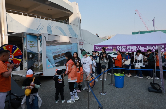 또한 포토존을 설치하고, 영동특산품 시식·시음 등 다양한 이벤트를 진행해 방문객들에게 영동군의 매력을 전달했다.