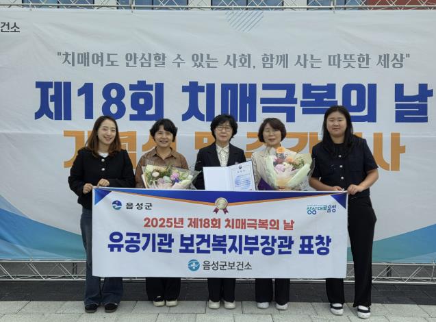 음성군치매안심센터는 지역사회 내 치매 예방과 조기검진 확대, 치매 친화적 환경 조성, 환자와 가족 지원 체계 강화 등 다방면에서 보건복지부로부터 탁월한 성과를 거둔 공로를 인정받았다.