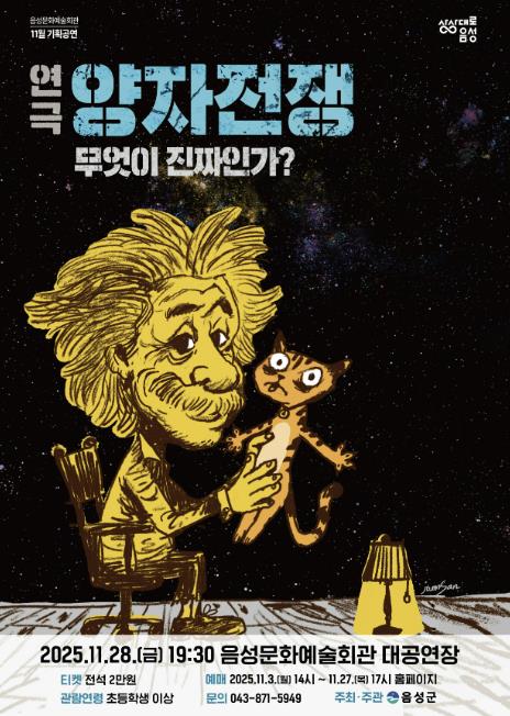 [무한뉴스=정민정 기자] 음성군은 오는 11월 28일 음성문화예술회관 기획공연으로 연극 '양자전쟁'을 선보인다고 밝혔다.