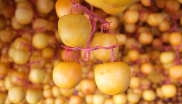감은 깨끗하고 안전한 위생처리시설을 갖춘 감타래에서 약 45일간 자연 건조를 거쳐 황금빛 곶감으로 변신한다.