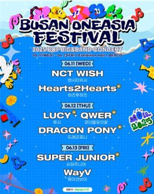 [무한뉴스=최진수 기자] 부산시는 2025 부산원아시아페스티벌(Busan One Asia Festival)의 '비오에프 빅 앤 밴드 콘서트(BOF Big · Band 콘서트)' 2차 출연진(라인업)을 공개했다.