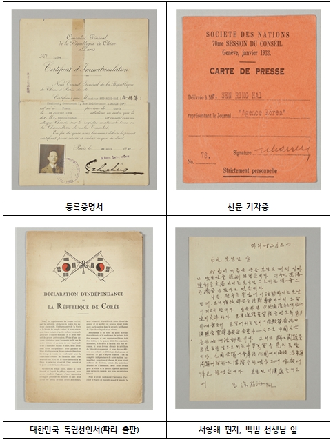 '독립운동가 서영해 관련 자료'에는 프랑스를 중심으로 외교활동을 전개한 그의 흔적들이 고스란히 담겨 있다.