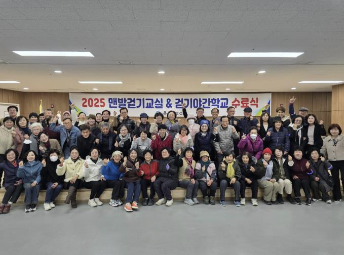 [무한뉴스=정민정 기자] 충주시는 시민들의 걷기 실천율 향상과 건강 증진을 위해 운영한 ‘신나는 맨발걷기 교실’과 ‘함께해요 걷기 야간학교’가 수료식을 끝으로 성황리에 마무리됐다고 밝혔다.