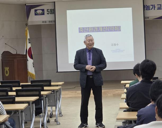 이날 교육에는 축산환경 컨설턴트이자 전 연암대학교 교수인 축산환경관리원 김동수 강사가 초빙돼 축산환경 개선 방안과 관내의 깨끗한 축산농장 우수사례를 소개했다. 이어진 질의 응답 시간에는 농장 운영 중 겪는 환경관리 문제에 대해 전문가와 심도 깊은 논의가 이뤄졌다.