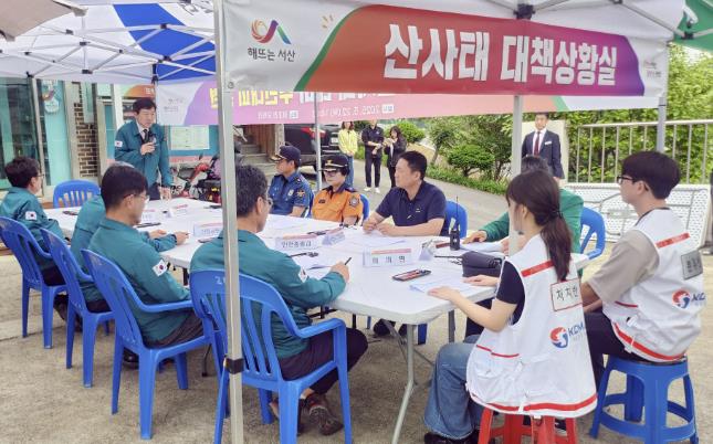 훈련은 해미면 오학리 산49번지 일원에서 서산시, 서산경찰서, 서산소방서, 서산시 산림조합, 의용소방대, 자율방재단 등 기관 관계자 70여 명이 참석했다.