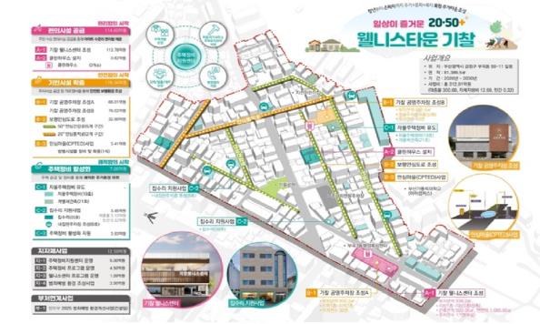 금정구는 내년부터 2030년까지 5년간 총 312억 원(국비 150억, 시비 75억, 구비 87억)을 투입하여 부곡3동 일대에 주민 거점시설인 기찰 웰니스센터 조성과 공영주차장 2개소(73면) 확층, 안전한 보행 환경을 위한 도로 정비와 안심마을(CPTED) 사업도 추진하여 주민 수요 맞춤형 기반‧편의시설을 공급할 계획이다.