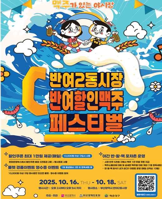 '반여·할인·맥주 페스티벌'은 '할인'과 '맥주' 그리고 '흥겨움'이 어우러진 반여2동시 장만의 특별한 가을 축제로, 다양한 할인 혜택과 경품 이벤트 등을 통해 전통시장 내 소비를 촉진할 예정이다.