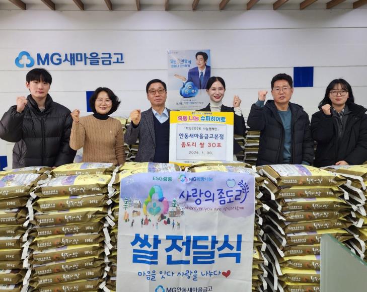 [무한뉴스=최진수 기자] 안동새마을금고는 1월 30일 ‘사랑의 좀도리 운동’을 통해 마련한 쌀을 관내 취약계층을 위해 기탁하며 지역사회 나눔을 실천했다.