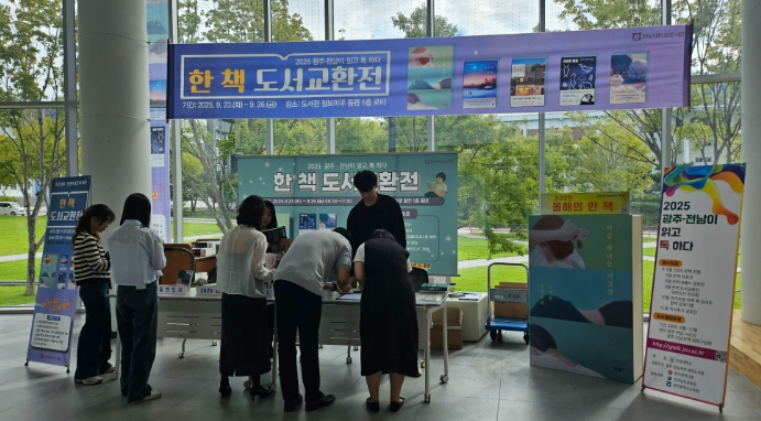 [무한뉴스=정민정 기자] 전남대학교 도서관은 지난 9월 23일부터 9월 26일까지 나흘간 도서관 정보마루 동편 1층에서 열린 ‘2025 한 책 도서교환전’이 성황리에 마무리됐다고 밝혔다.