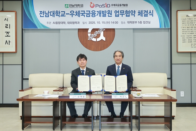 전남대는 10월 15일 대학본부 5층 접견실에서 우체국금융개발원과 ‘지역상생 및 AI융합 산학협력 증진을 위한 업무협약(MOU)’을 체결했다고 16일 밝혔다.