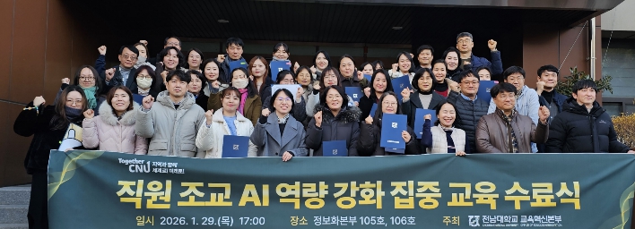 2일 전남대에 따르면, 전남대학교는 동계방학 기간 운영한 ‘직원·조교 AI 역량 강화 집중교육과정’을 지난 1월 29일 총 6차시, 24시간 일정으로 마무리했다.