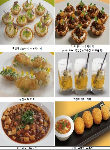 조리법은 ▲어묵, 국수, 명란, 들기름, 고등어 등과 같은 부산우수식품과 ▲기장미역·다시마, 대변항 멸치 등의 부산 향토 식재료를 바탕으로 개발됐다.