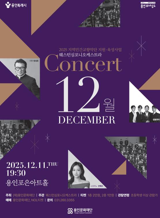 [무한뉴스=정윤식 기자] 용인문화재단은 오는 12월 11일 오후 7시 30분, 용인포은아트홀에서 웨스턴심포니오케스트라 '콘서트 ‘12월’' 공연을 개최한다.