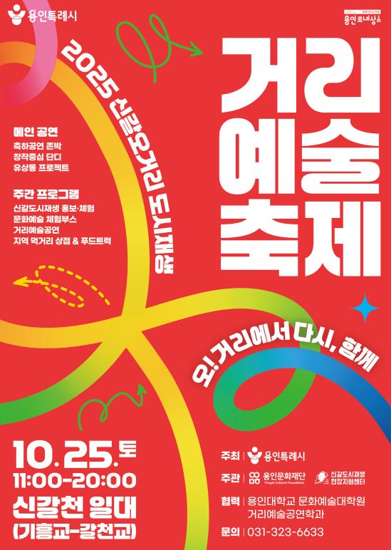 [무한뉴스=정윤식 기자] 용인특례시는 25일 신갈오거리에 있는 신갈천 일대에서 ‘2025 신갈오거리 도시재생 거리예술축제’를 개최한다고 14일 밝혔다.