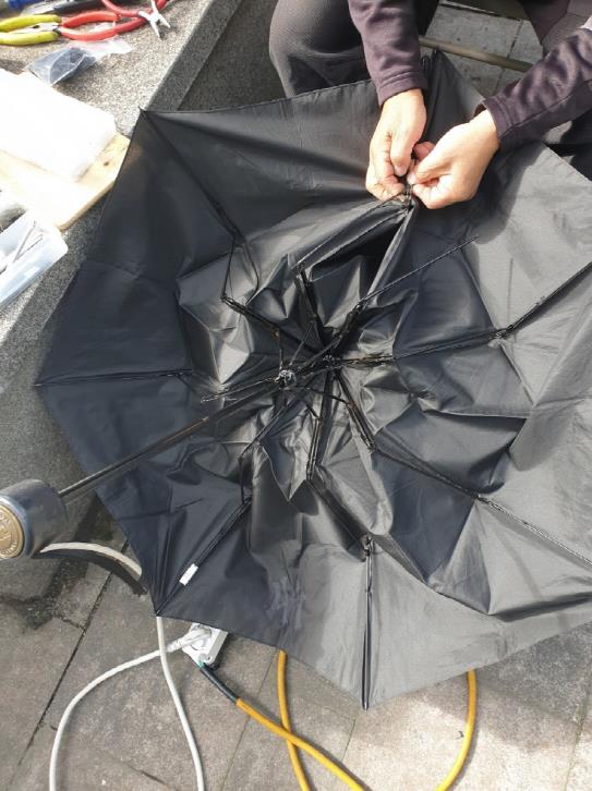 | ▲ 고장 난 우산을 수리하는 모습 |
