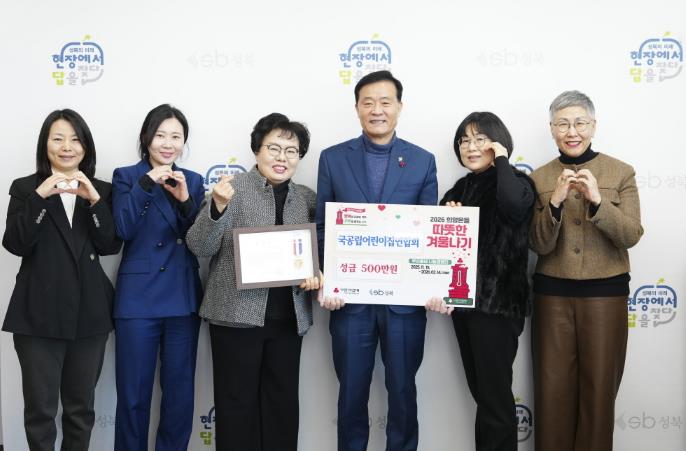 [무한뉴스=정승훈 기자] 서울 성북구 국공립어린이집연합회가 겨울철 취약계층을 돕기 위한 ‘따뜻한 겨울나기’ 나눔 캠페인에 동참해 성금 500만 원을 성북구청에 전달했다.