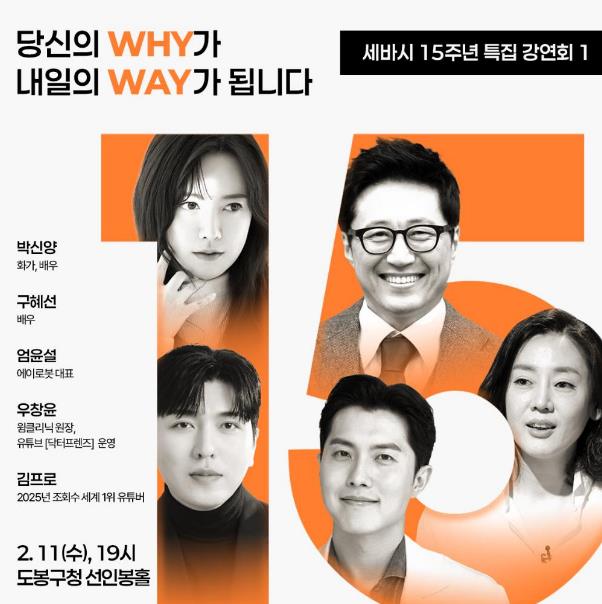 [무한뉴스=정승훈 기자] 서울 도봉구가 2월 11일 오후 7시 도봉구청 2층 선인봉홀에서 세바시(세상을 바꾸는 시간 15분) 15주년 특집 강연회가 열린다고 밝혔다.