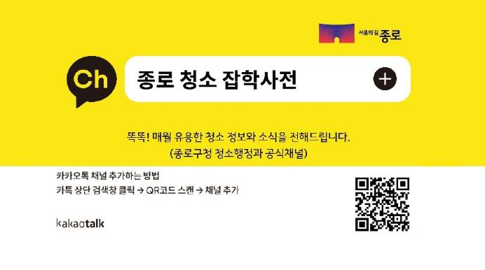 [무한뉴스=정승훈 기자] 종로구는 2026년 1월부터 카카오톡 채널을 통해 청소 정보를 쉽고 빠르게 받아볼 수 있는 '종로 청소 잡학사전' 운영을 시작한다.