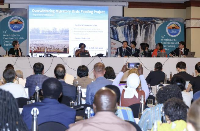 | ▲ 7월 람사르협약 당사국총회(COP15)에 습지보전 우수사례 도시로 초청돼 ‘드론 활용 철새 먹이주기 사업’을 발표한 고양시 |