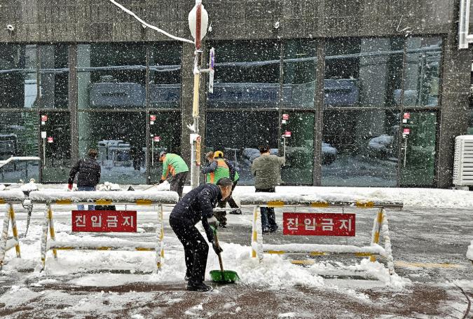 | ▲ 부천시 공직자들이 시민 안전을 위해 제설작업을 진행하고 있다. |