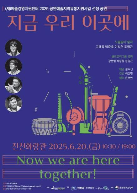 [무한뉴스=정민정 기자] 충북 진천군은 진천 화랑관에서 사물놀이 땀띠의 ‘우리 지금 이곳에’ 국악 공연을 오는 20일 개최한다고 10일 밝혔다.