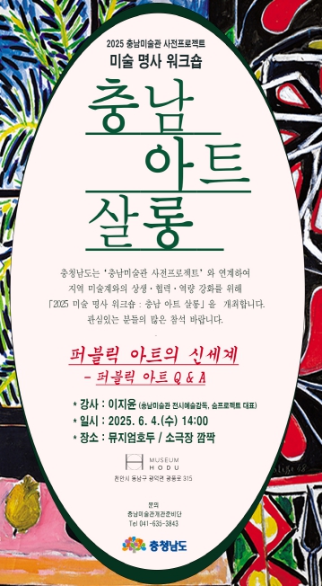 [무한뉴스=정민정 기자] 충남도는 4일 천안 뮤지엄 호두에서 ‘2025년 미술 명사 워크숍(충남 아트 살롱)’의 1회차 행사를 개최했다.