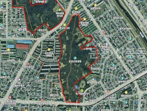 운천근린공원은 2022년 부지매입 완료 후 2024년 훼손지 복원숲 조성사업을 마무리했으며, 이번 조성공사 사업비 30억원을 투자해 야외무대 설치, 산책로 정비, 초화원 조성, 화장실 등을 설치한다.