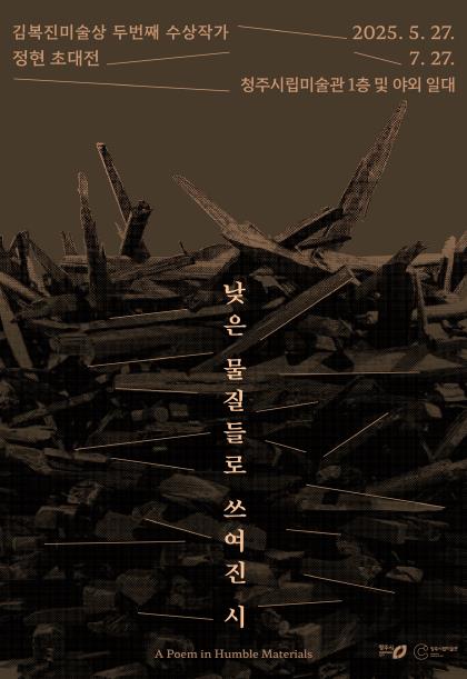 [무한뉴스=정민정 기자] 청주시립미술관은 제2회 김복진미술상 수상 작가 정현 초대전 ‘낮은 물질들로 쓰여진 시’와 지역 원로작가 4인의 작품 세계를 조망하는 기획전 ‘담대하게’를 오는 7월 27일까지 개최한다.