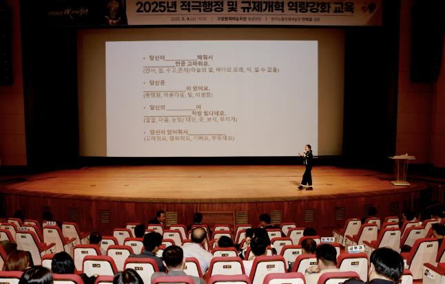 [무한뉴스=정민정 기자] 보령시는 지난 4일 보령문화예술회관 대공연장에서 전 직원을 대상으로 적극행정 역량을 강화하고 규제개혁에 대한 공감대 형성을 위한 ‘2025년 적극행정·규제개혁 역량강화 교육’을 실시했다.
