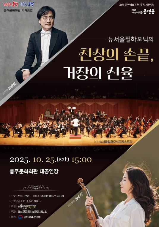 [무한뉴스=정민정 기자] 깊어가는 가을에 어울리는 정통 클래식 오케스트라 공연 ‘뉴서울필하모닉의 천상의 손끝, 거장의 선율’이 오는 25일 오후 3시, 홍성군 홍주문화회관에서 열린다.