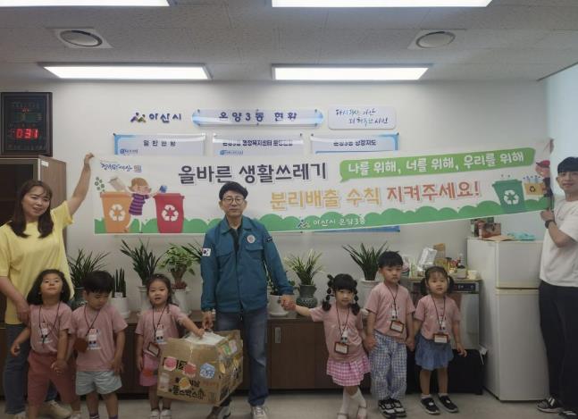 [무한뉴스=정민정 기자] 아산시 온양3동 행정복지센터가 지난 5일 모종 캐슬어울림 2단지 어린이집 아이들과 재활용품 교환 사업을 진행했다.