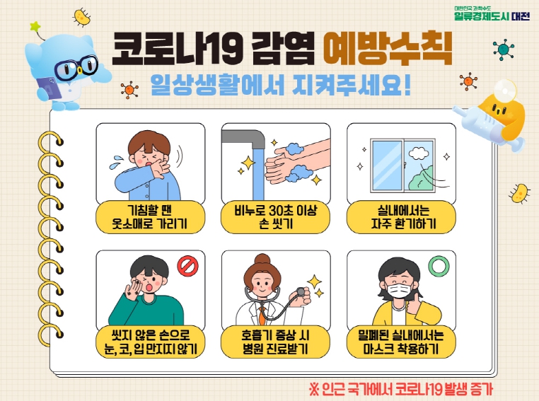 시는 또 해외에서 코로나19 유입을 막기 위해 해외여행 후 입국 시 의심 증상이 있을 경우 즉시 공항 검역관에게 알릴 것을 당부하며, 일상 속 ▲손 씻기 ▲기침 예절 ▲마스크 착용 등 개인 방역수칙을 철저히 지킬 것을 강조했다.