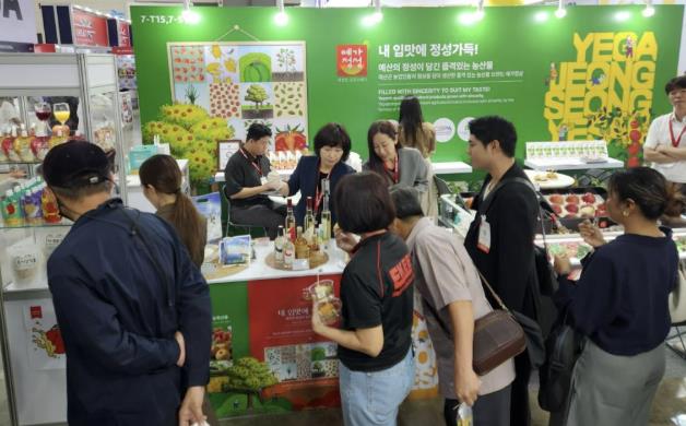 ‘예가정성 홍보관’은 충청남도 농식품 수출확대 사업과 예산군 농특산물 유통·마케팅 활성화 사업을 연계해 추진되며, 예가정성 브랜드 홍보를 비롯해 △예산 황토사과 △예산 대추방울토마토 △사과·배 등 생즙 △한과 △고품질 삼광쌀 △와인류 등 6개 업체의 예가정성 인증 가공제품이 전시된다.