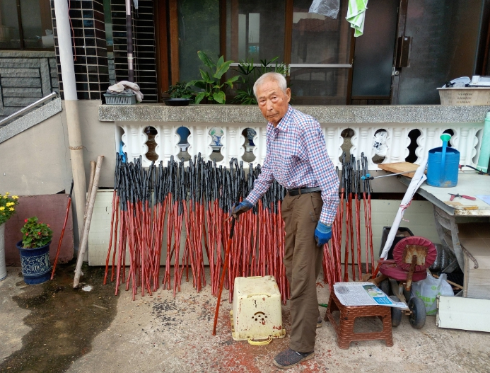 | ▲ 최규택 씨, 직접 제작한 장수지팡이 134개 기증 |