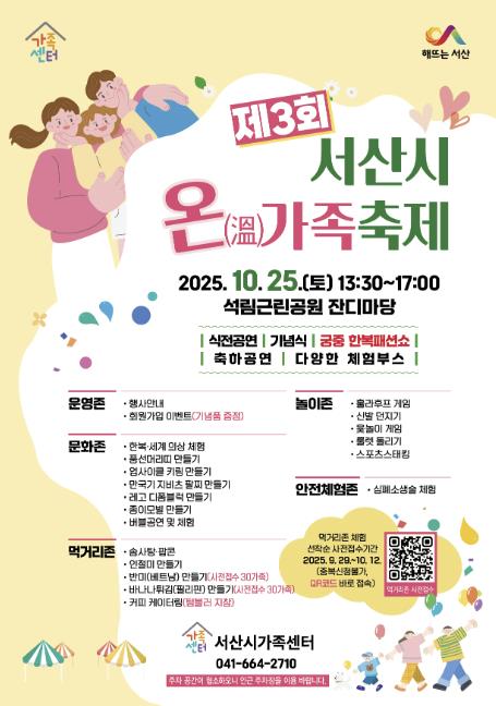 [무한뉴스=정민정 기자] 충남 서산시는 오는 10월 25일 석림근린공원 잔디마당 일원에서 제3회 온(溫)가족 축제를 개최한다고 밝혔다.
