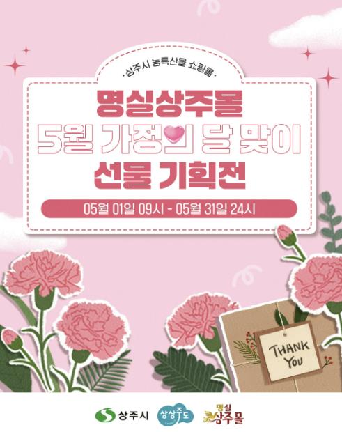 상주시 관계자는 “가정의 달을 맞아 감사한 마음을 전할 수 있는 좋은 기회”라며 “건강하고 정성 가득한 상주 농특산물로 따뜻한 선물의 마음을 전하시길 바란다”고 전했다.