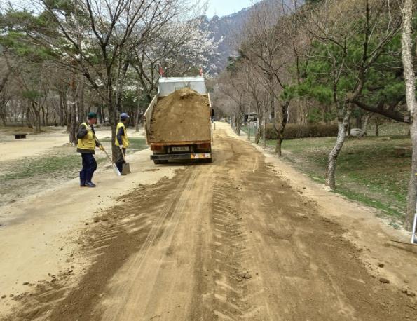 최근 날씨가 포근해지면서 문경새재를 방문하는 관광객이 증가하고 있다. 이에 문경새재관리사무소는 탐방로 환경 개선을 위해 마사토 보충, 평탄 작업 등 마사토길 정비를 실시했다.